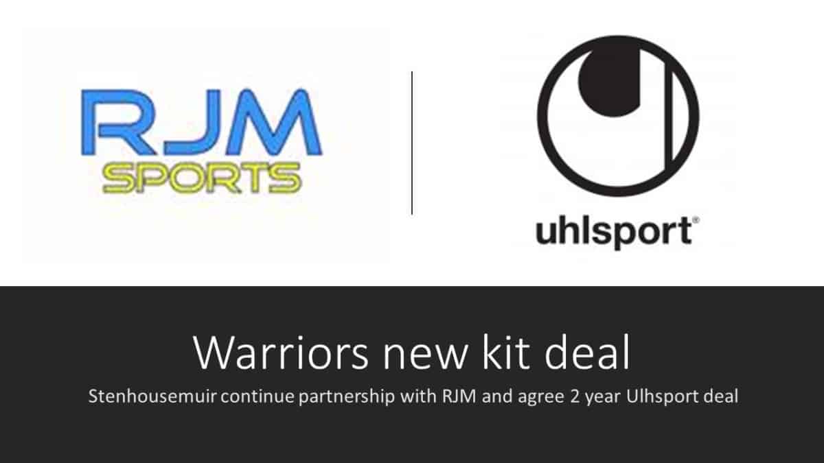 March 26, 2019Stenhousemuir Football Club is pleased to announce that the Club will continue it’s partnership with RJM Sports for a minimum of another 2 years. RJM Sports has been the official kit provider to the Warriors for the last few seasons and both parties were happy to extend the partnership. The locally based sports kit provider supply all first team strips, training attire and coaching kit as well as providing an excellent service for our Warriors in the Community members for all their training and match needs.