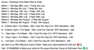 Call : 0134562992 to Book your slots for this year’s Mini Maroons Summer Camp at Larbert High School