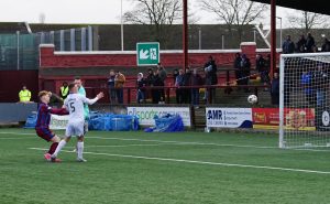 Alston had a previous effort before his spectacular goal that grazed the side netting in the opening five minutes, and seven minutes later he made sure that the Dumfries side paid for their loose passing. He scored a wonderful goal after he floated his effort over the top of the keeper, despite the ball taking an age to ripple in the net! 1-0.